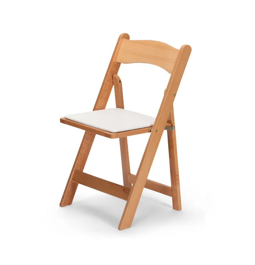 Wood Folding Chair in natural with pad seat