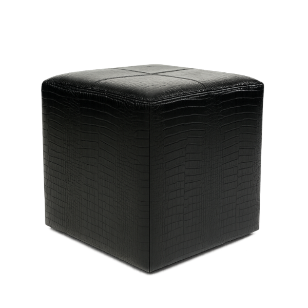 18″ Square Black Leather Ottoman